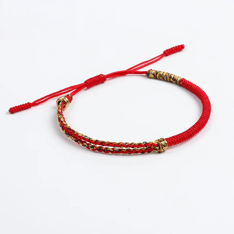 Handmade Tibetan Blessed Gradient Braided Thread for "Divine Protection & Energy Flow" – Featuring Gold Tibetan Amulet Charm