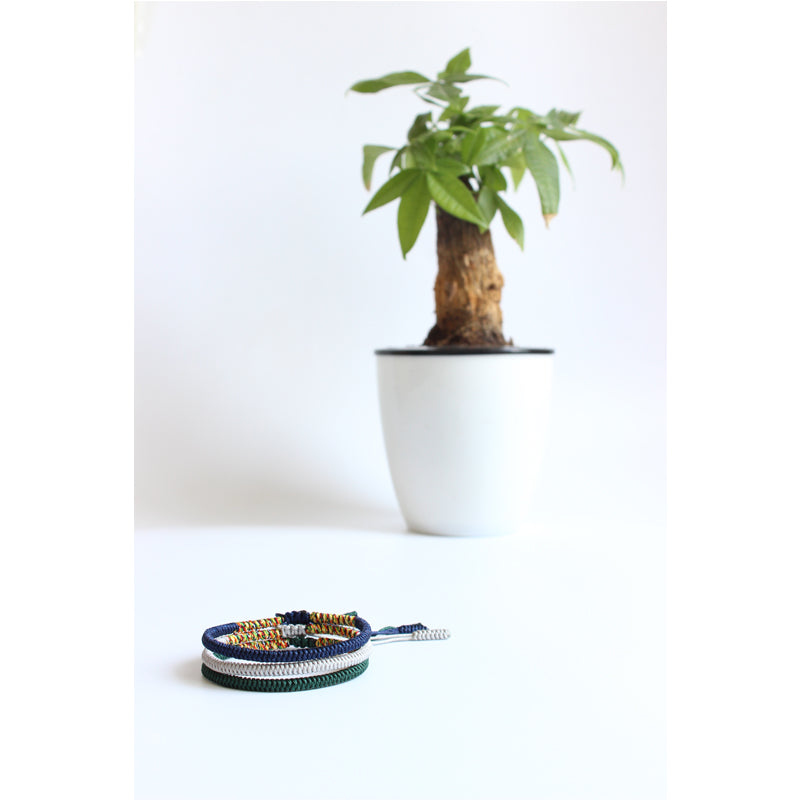 This bracelet is from the HANDMADE TIBETAN BLESSED LUCKY KNOTS COLLECTION, a collection which integrates the essence of energy work in the wearer’s being. All string bracelets carry powerful energy as they were handcrafted by Tibetan Buddhists while chanting their mantras.